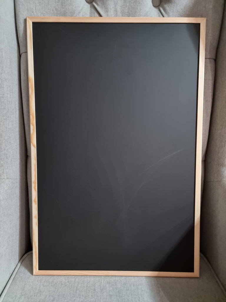 The chalkboard is 60cm high x 40cm wide. Timber colour may vary.