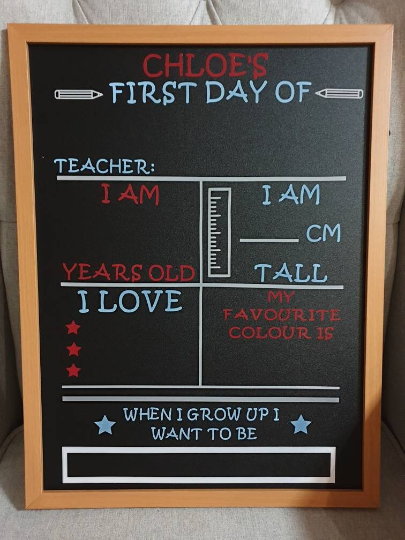 After adding this item to your shopping cart, please click on "Personalise Your Products" and enter the name and 1-2 school colours you would like personalised on your new chalkboard!! Please note that if you are ordering more than one personalised item, all of these details need to be entered into the same box.