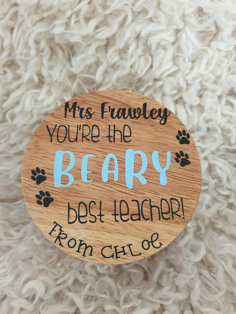 - Gummi bears = (Teacher name) You're the BEARY best teacher! Love/from (name)