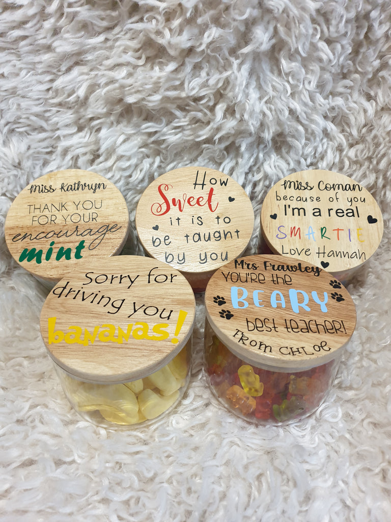 These jars are great for teacher appreciation gifts! Choose from a variety of lolly types to keep everyone happy!