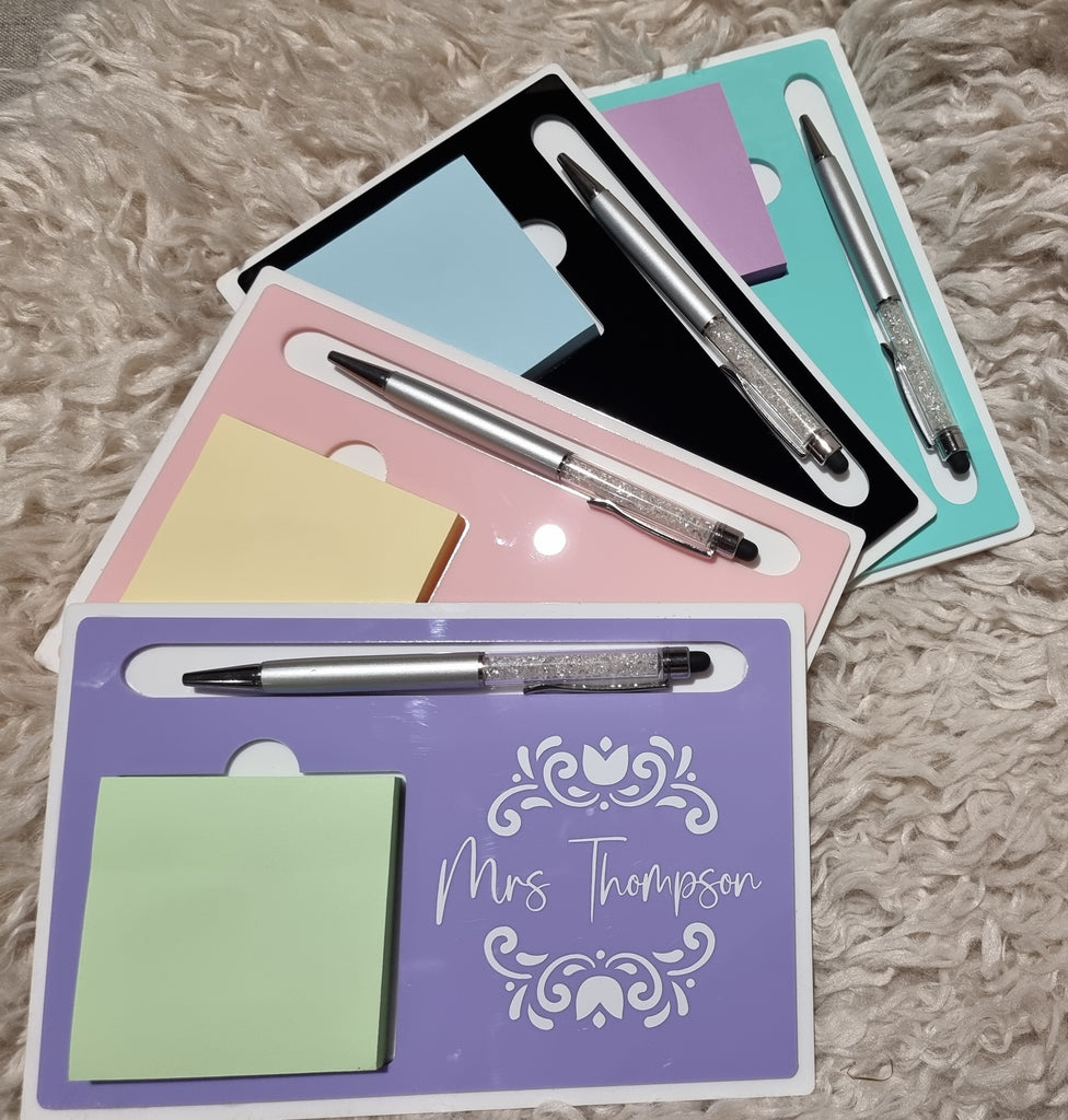 Comes with assorted colour sticky note pad and crystal stylus pen.