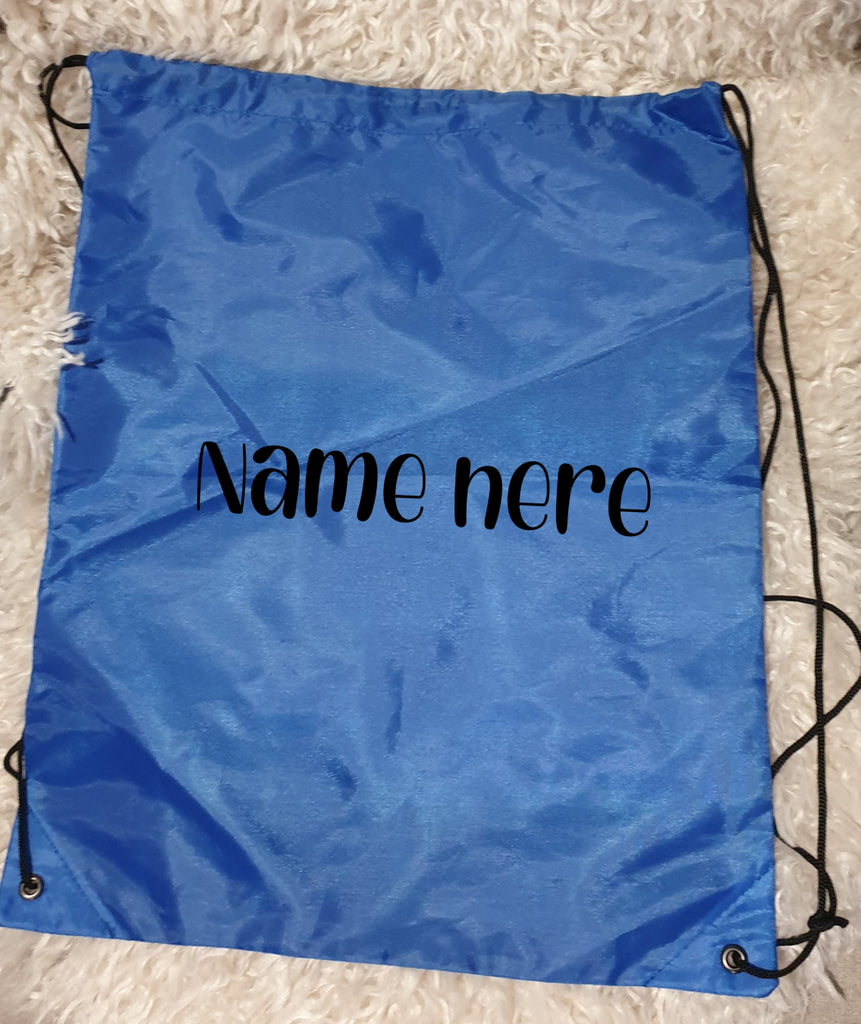 Each bag can be personalised with a name and small picture, please select from the options provided. The text and picture will be applied in black, except for the black coloured bag, which will have the text and picture applied in white.